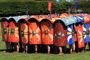 The Roman Army had a very effective battle strategy called the ‘tortoise’ formation. The soldiers formed up in ranks with shields held to the front, outer sides and aloft, giving protection individually and collectively under a ‘tortoise shell’. It was very difficult for the enemy to penetrate.