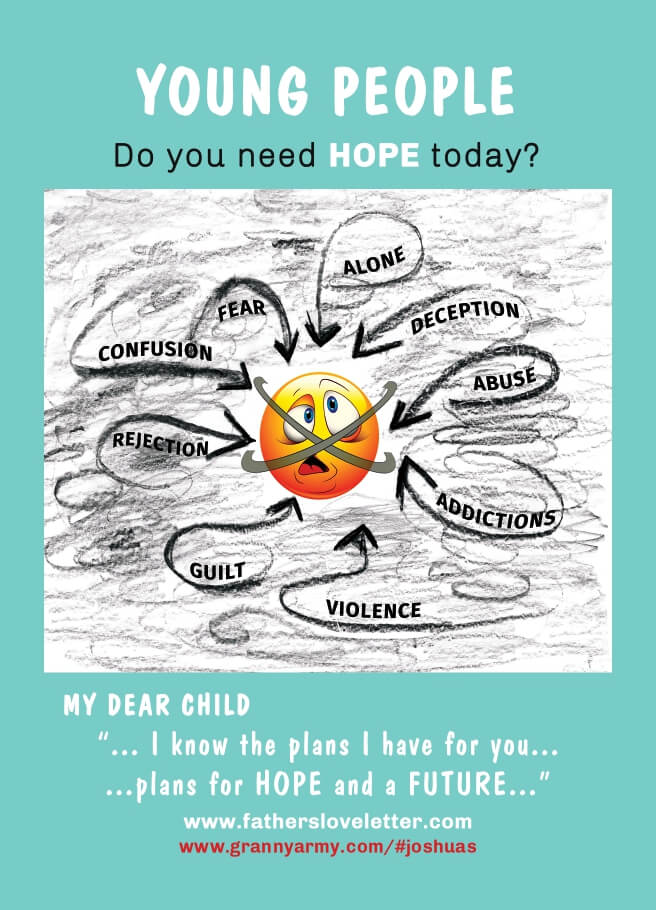 These were cries for help from young people who have decided to follow Jesus. There are countless others who are not yet surrendered to His love who do not know they can call for help, and tragically others who are too tiny, weak and voiceless to do so anyway. Each one does need help at such a time as this. Help to enter into and stand in that glorious promised land of eternal relationship with our Heavenly Father, restored and reconciled with Him now and for evermore by the shed blood of our Lord Jesus Christ on the cross at Calvary, and His glorious resurrection.